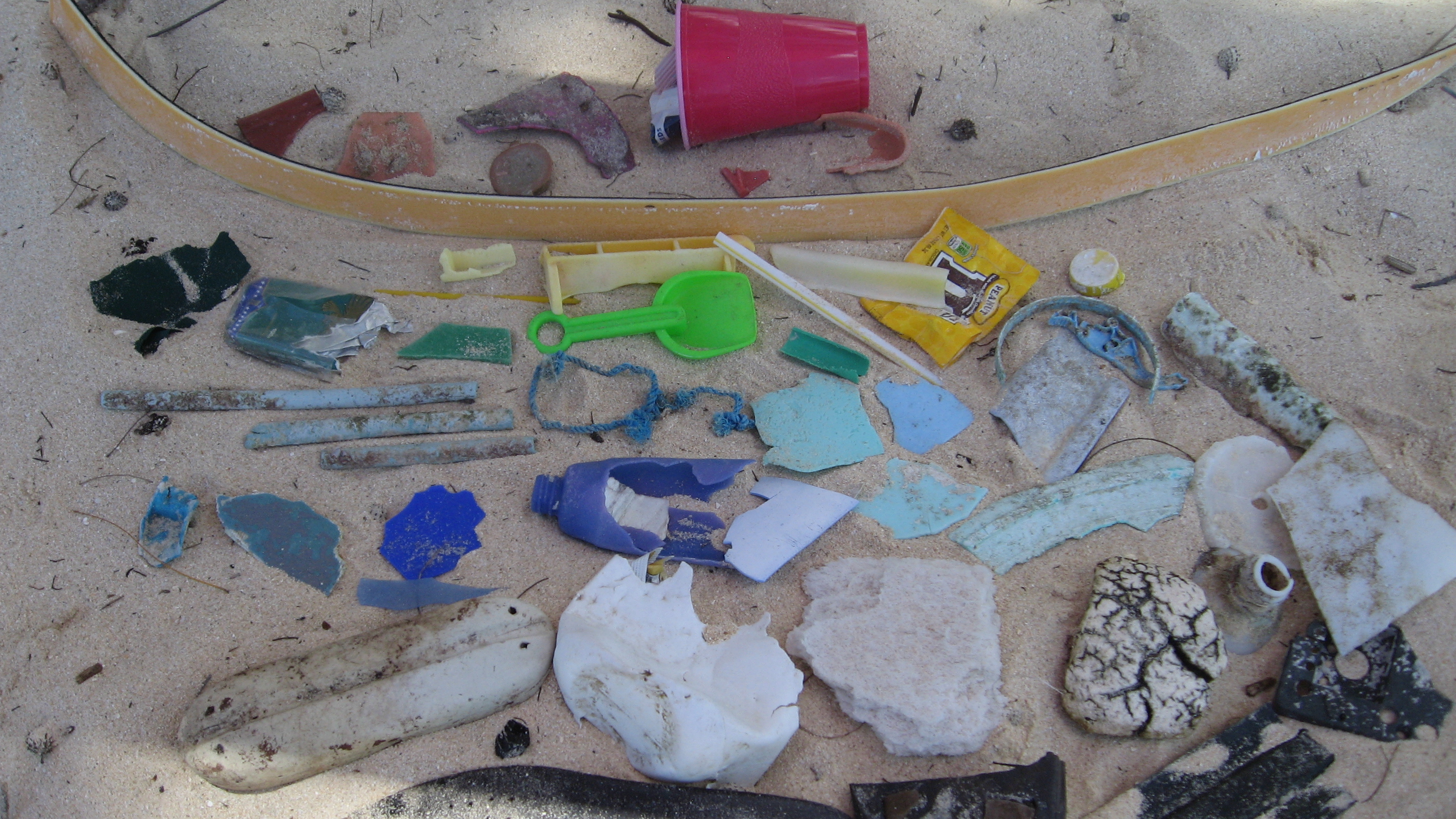 As my sister pointed out, you don’t even see most of the plastic unless you are looking for it. Like the garbage patch, most detritus is broken into pieces, colorful sprinkles of festive, but toxic synthetic sand. Dragging an increasingly weighty garbage bag on a hot morning across only a tiny fragment of one beach, unable to collect all the little pieces, we began to get a very practical sense the impossibility of clean-up.