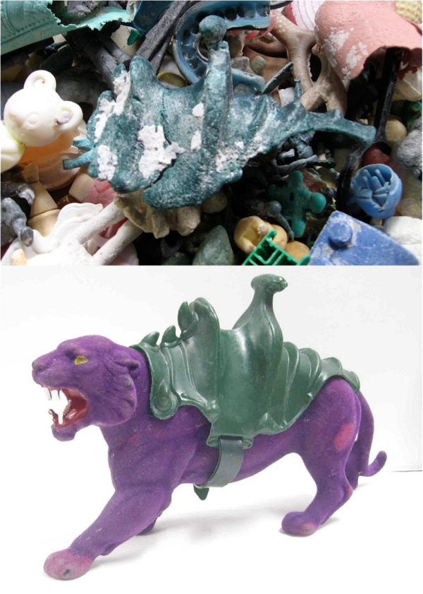 Google sleuths and polyglots! I need your help solving a collection of (s)pacific mysteries. Instincts honed in the 80s served me well in identifying the green lump of plastic above as a battlecat saddle from He-Man (Panthor’s actually based on the colour), but do you have any ideas about the rest of these objects found washed up on Kamilo beach in Hawaii?